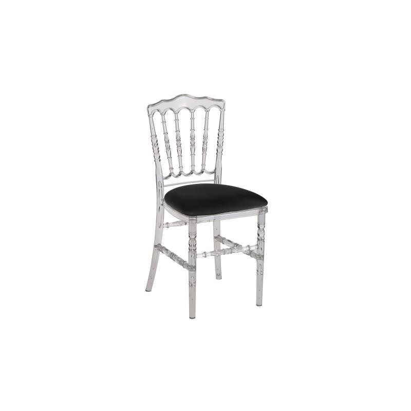 Made from transparent polycarbonate, the Crystal Napoleon Chair with Black Seat offers both elegance and durability.