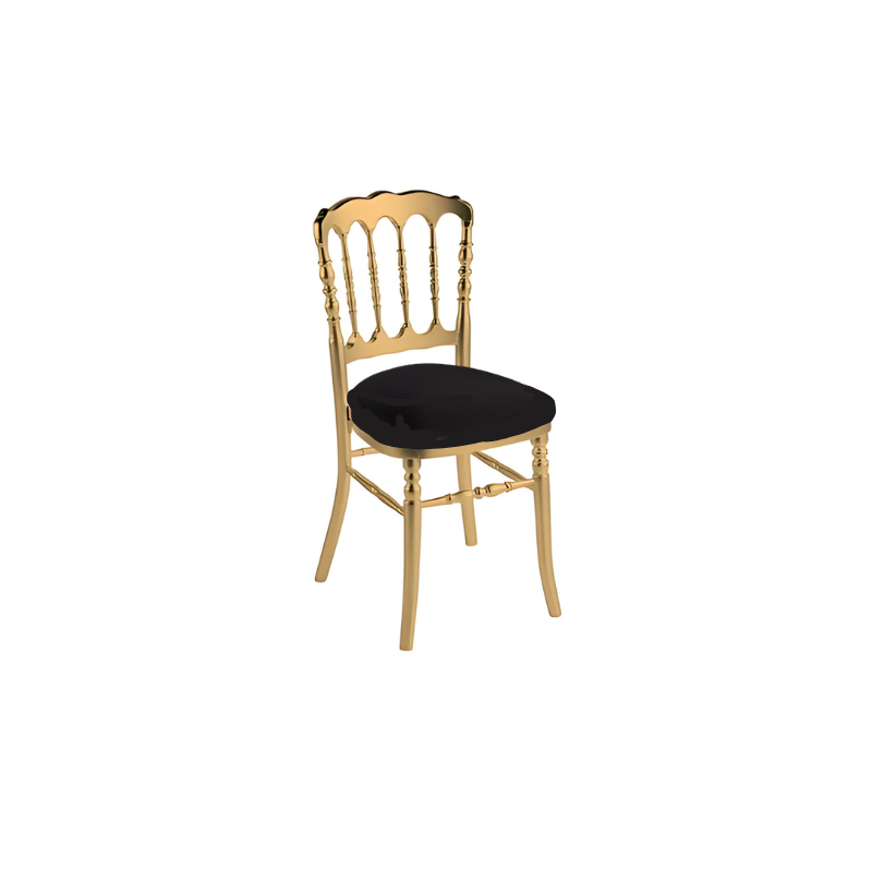 Constructed from lightweight yet sturdy aluminium, the Gold Napoleon Chair with Black Seat combines elegance, comfort, and practicality.