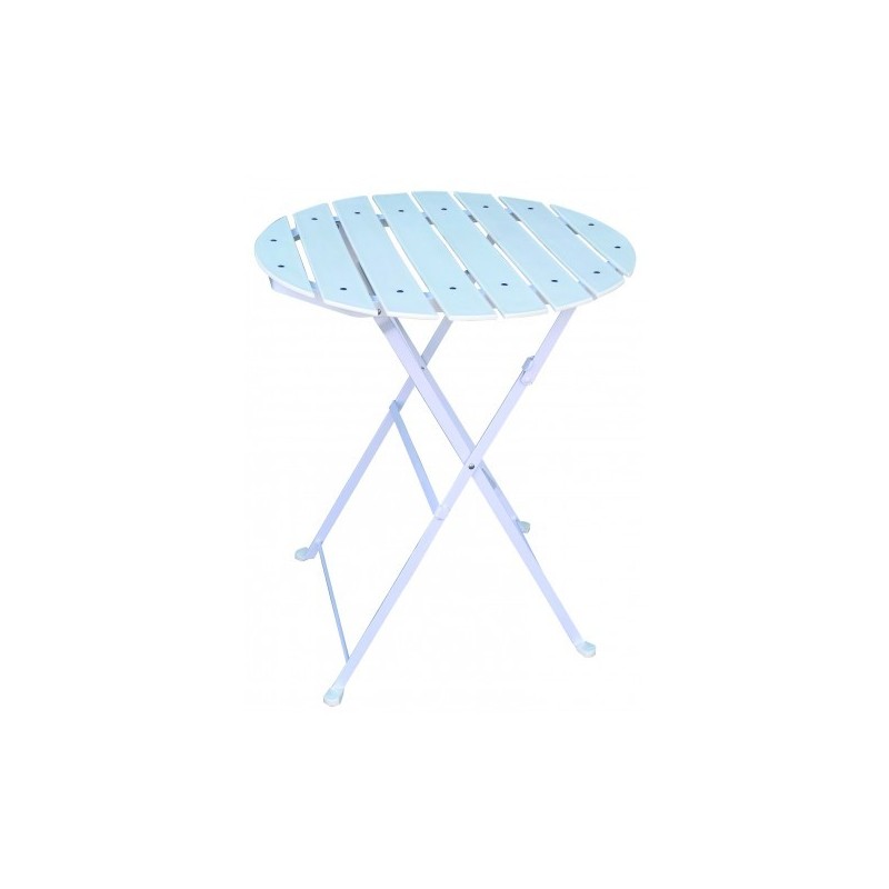 Round slatted white polypropylene tabletop.