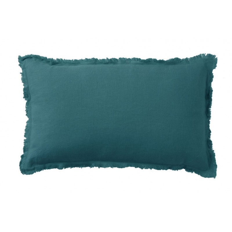 RECTANGULAR LINEN CUSHION WITH FRAYED EDGES BLUE 30×50 CM