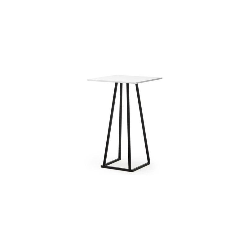 • High table with black aluminium frame and white square tabletop.
