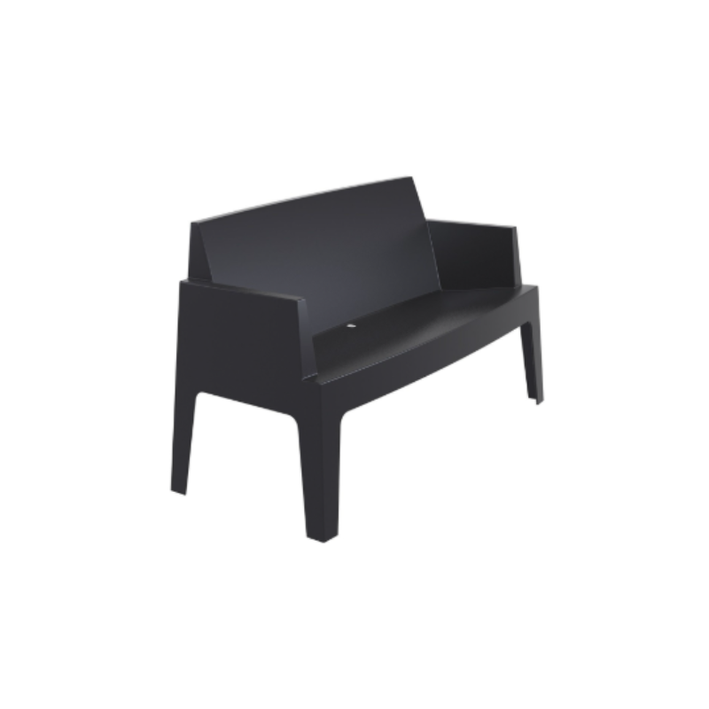 Black polypropylene bench sofa, designed for lounge-style seating.